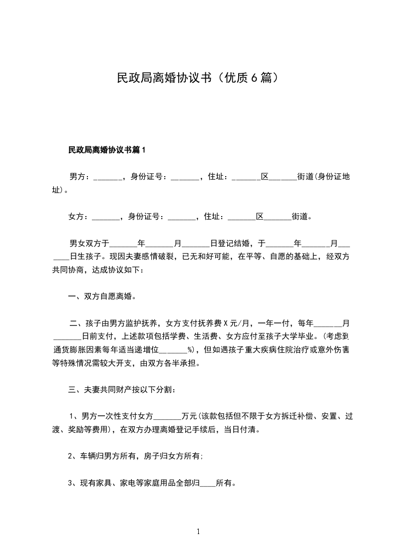 本协议一式三份,自婚姻登记机关颁发《离婚证》之日起生效,男、女双方各执一份,婚姻登记机关存档一份。