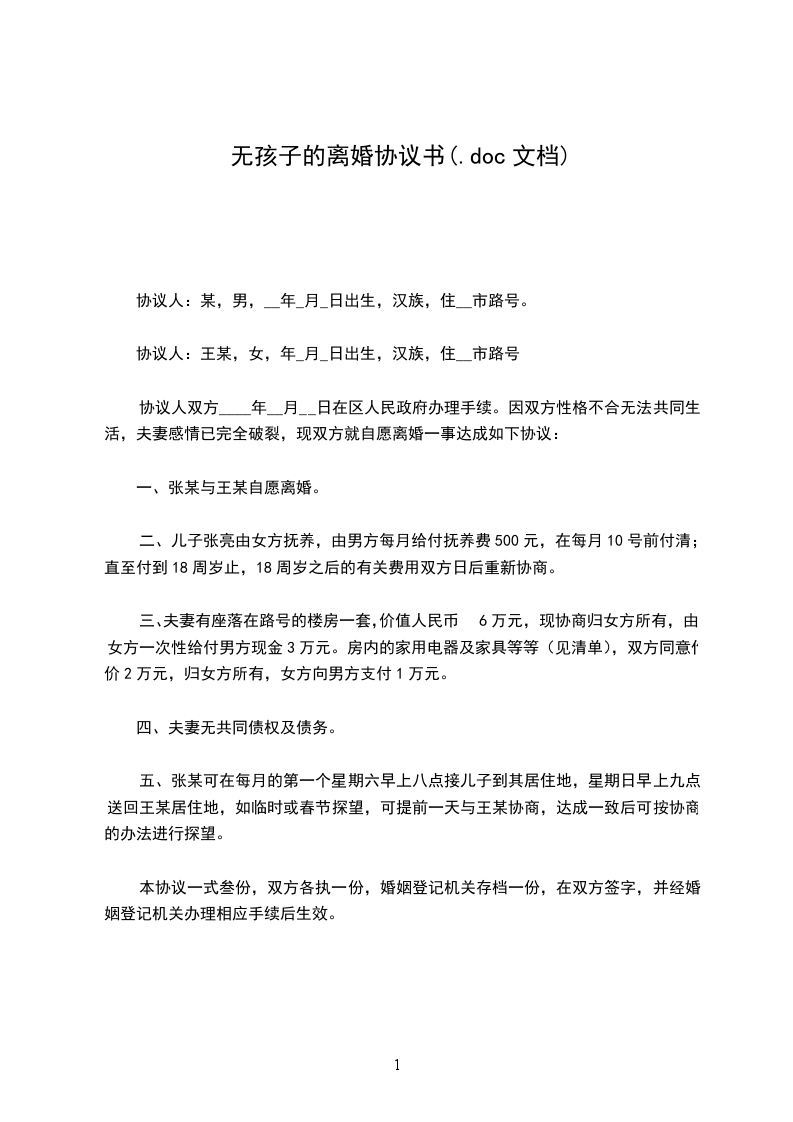 五、张某可在每月的第一个星期六早上八点接儿子到其居住地,星期日早上九点送回王某居住地。如临时或春节探望,可提前一天与王某协商,达成一致后可按协商的办法进行探望。