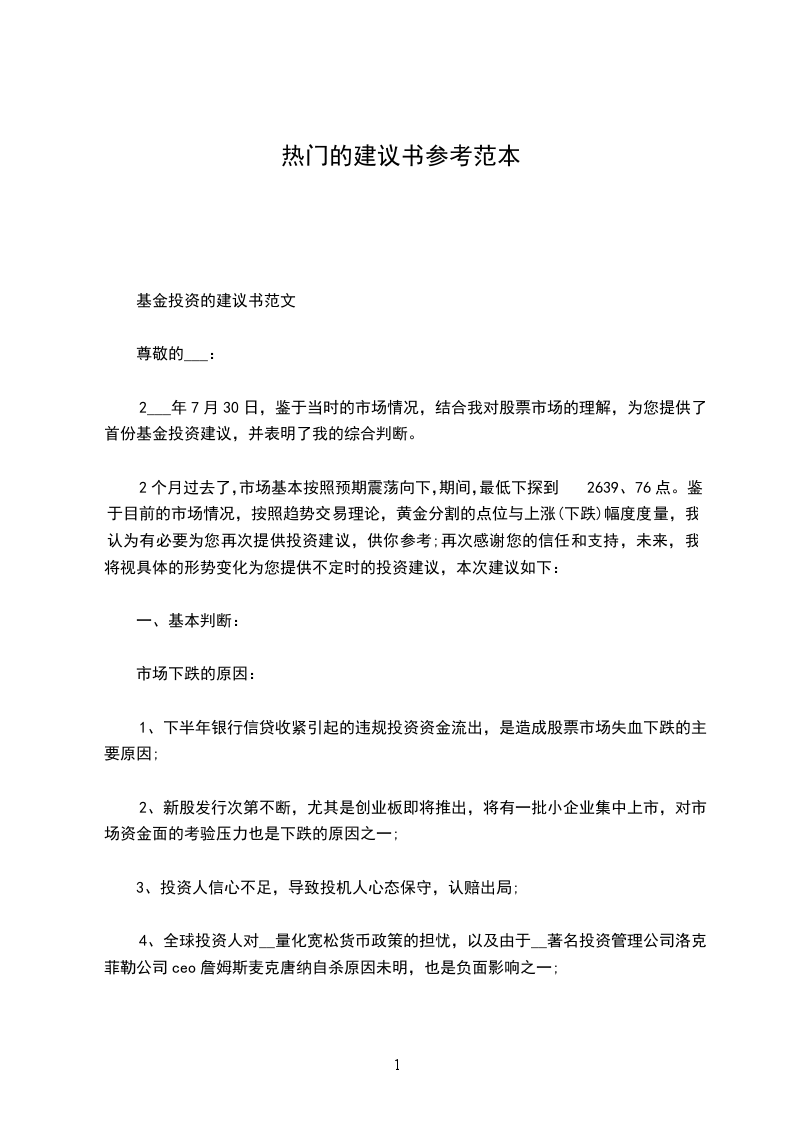 基金投资的建议书范文