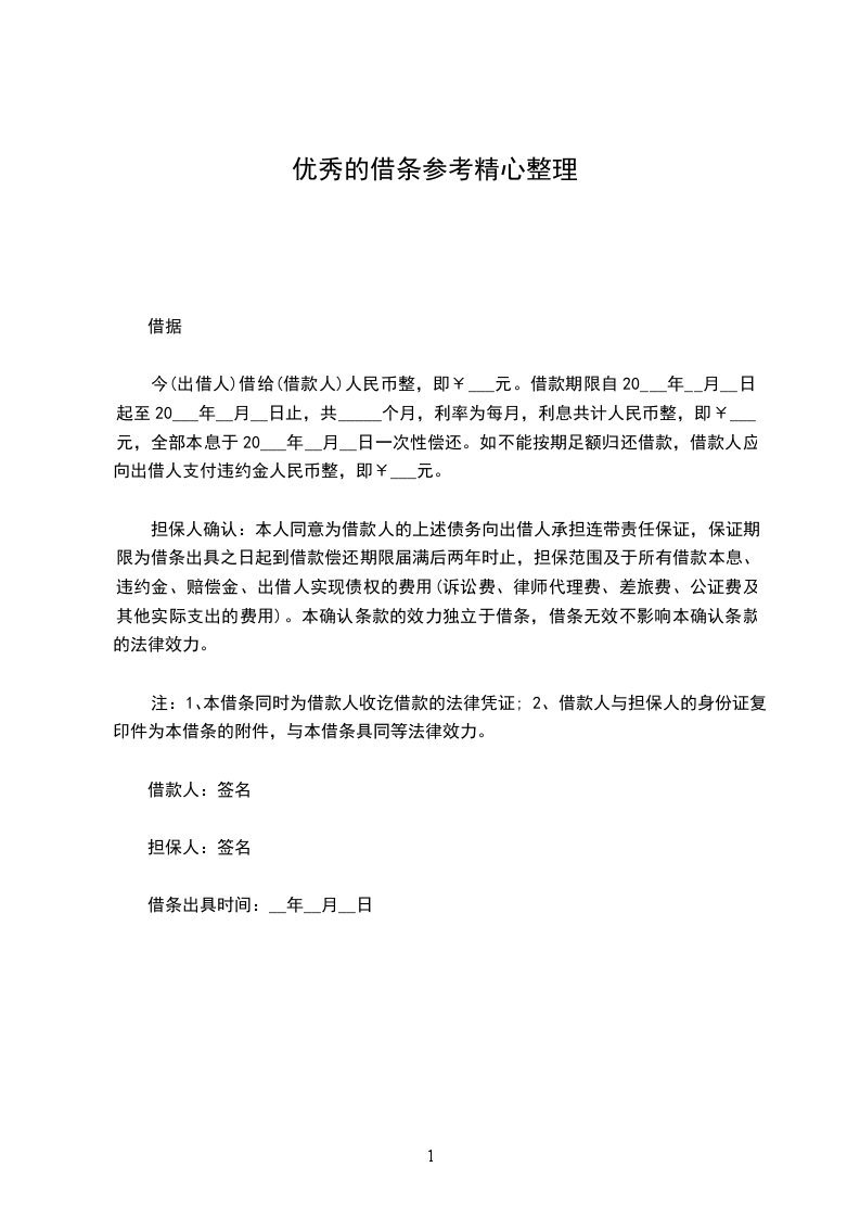 注:1、本借条同时为借款人收讫借款的法律凭证;2、借款人与担保人的身份证复印件为本借条的附件,与本借条具同等法律效力。
