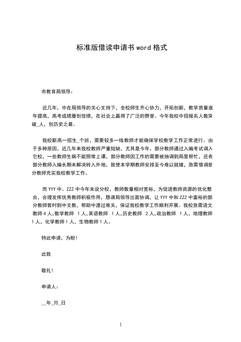 我校新高一招生_个班,需要较多一线教师才能确保学校教学工作正常进行。由于多种原因,近几年来我校教师严重短缺,尤其是今年,部分教师通过入编考试调入它校,一些教师生病不能照常上课,部分教师因工作的需要被抽调到局里帮忙,还有部分教师入编长期未解决转入外地,致使本学期教师安排至今难以就绪,急需借调部分教师充实我校教学工作。