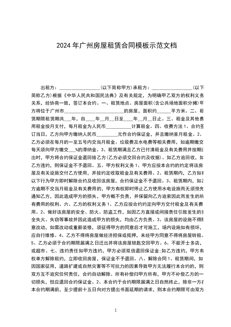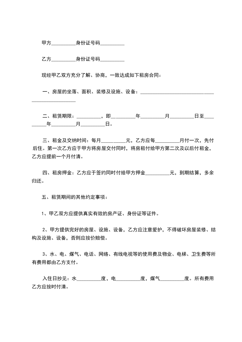 1、合约签订当日,乙方向甲方缴纳人民币_________元作合约保证金,并且缴纳首月租金。
