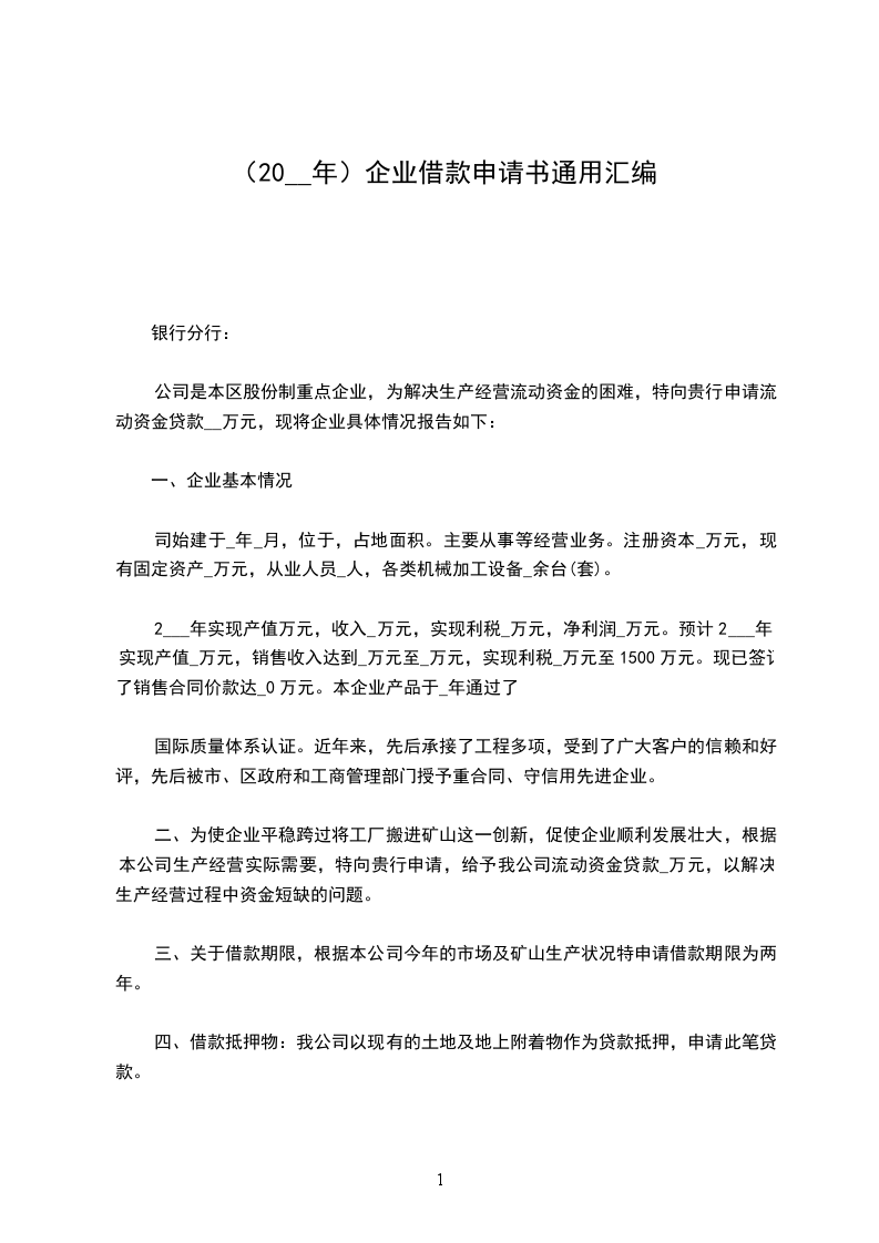 公司是本区股份制重点企业,为解决生产经营流动资金的困难,特向贵行申请流动资金贷款__万元,现将企业具体情况报告如下:
