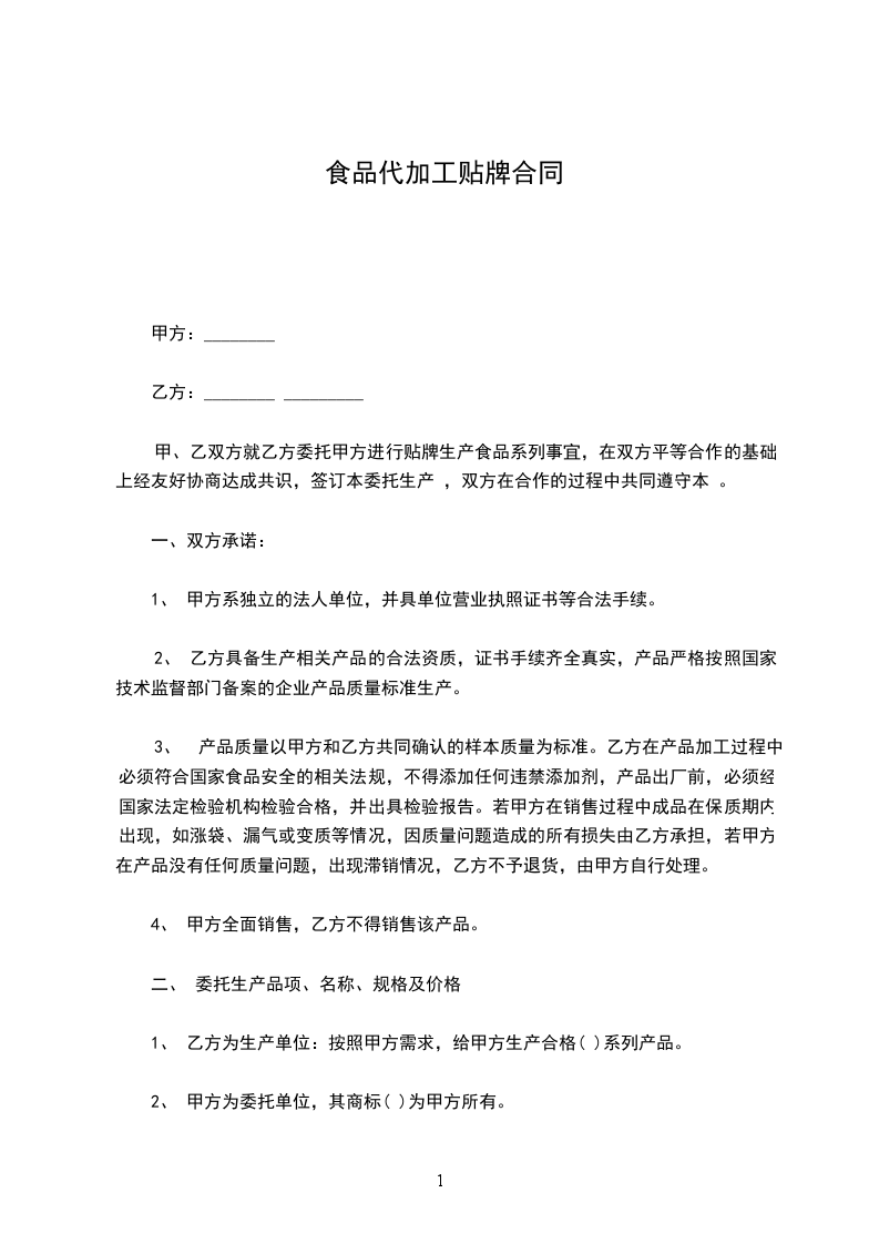 第一条 加工成品: