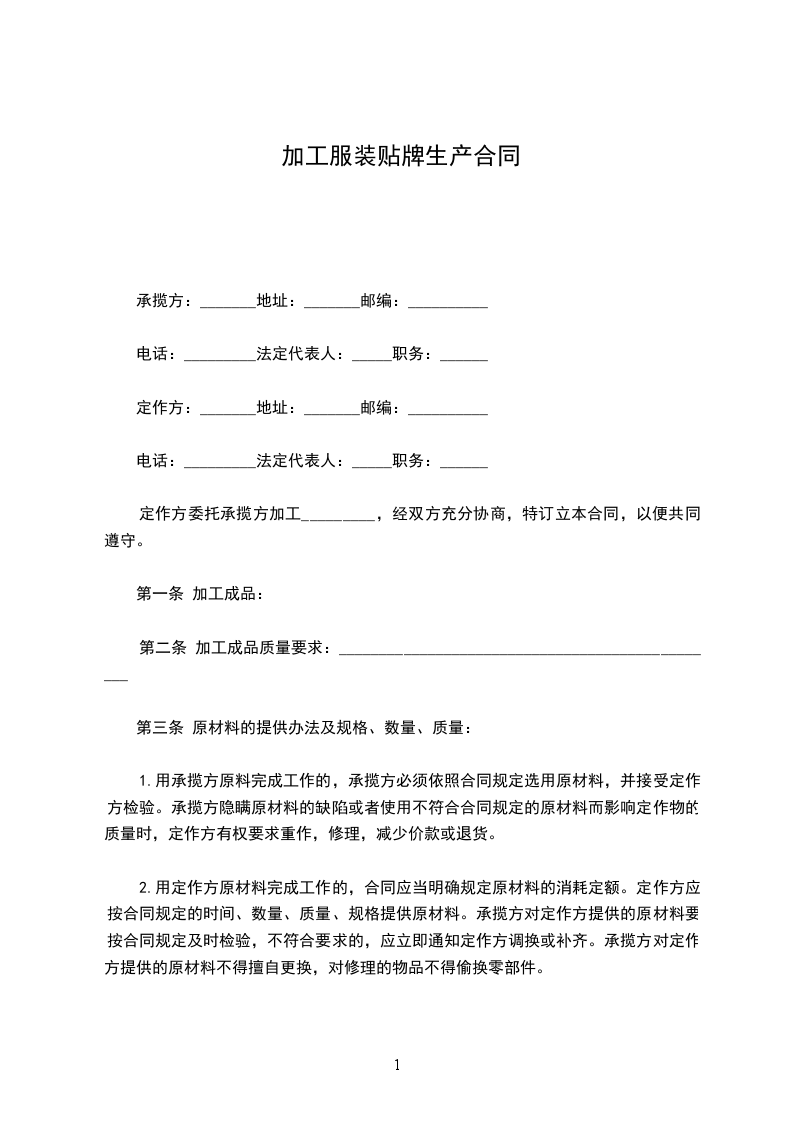 承揽方:_______地址:_______邮编:__________