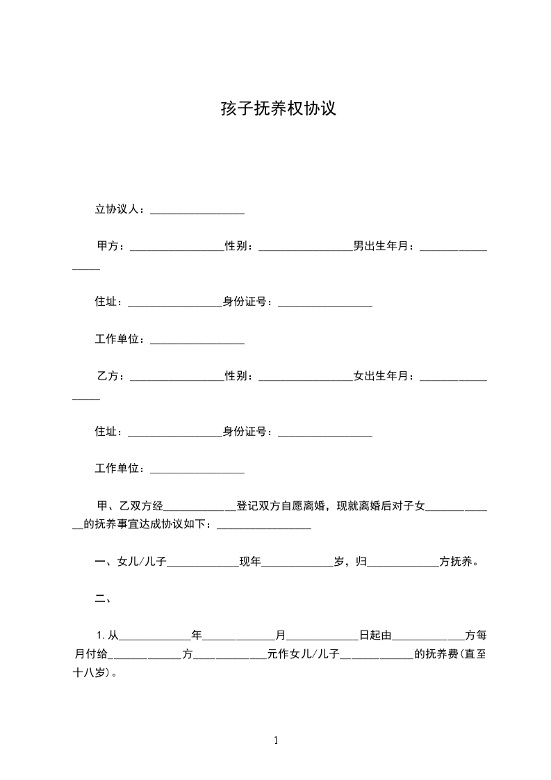 孩子抚养权离婚协议书2男方:____,男,汉族,____年__月__日生,住______,身份证号码: