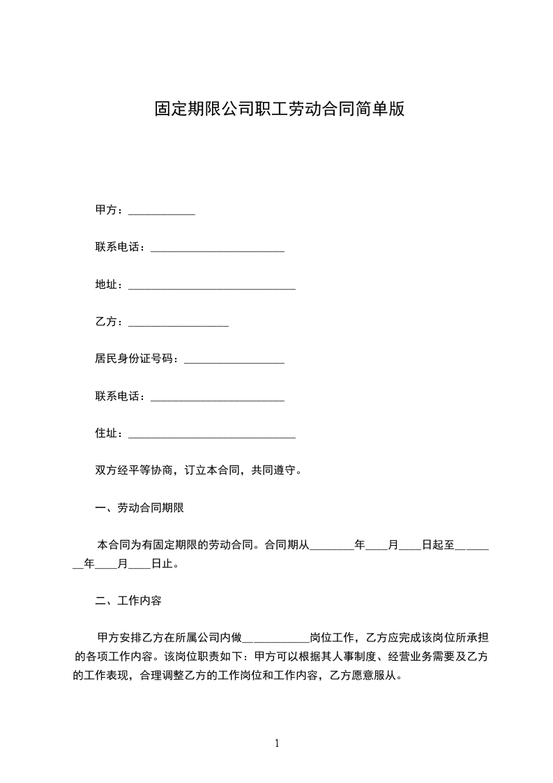 本合同为有固定期限的劳动合同。合同期从________年____月____日起至________年____月____日止。