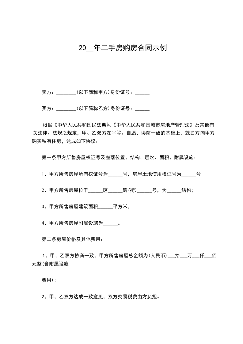 1、甲、乙双方协商一致,甲方所售房屋总金额为(人民币)___拾___万___仟___佰元整(含附属设施