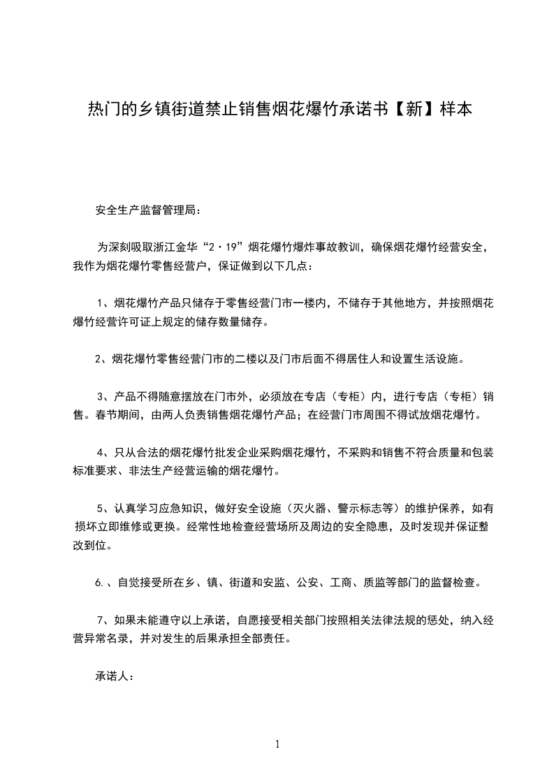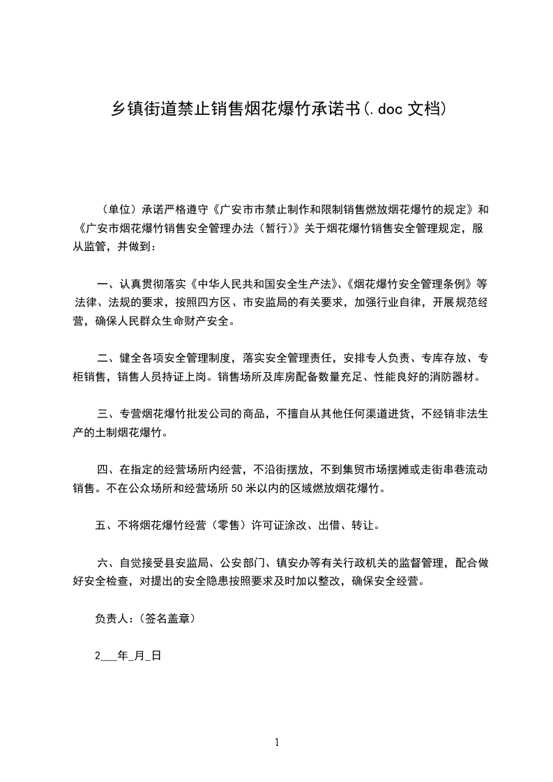 一、不在任何场所,特别是易燃易爆等规定禁止烟火的地点燃放烟花爆竹。不运输、储存、销售、携带和燃放烟花爆竹,以自己的行为带动和影响身边人。