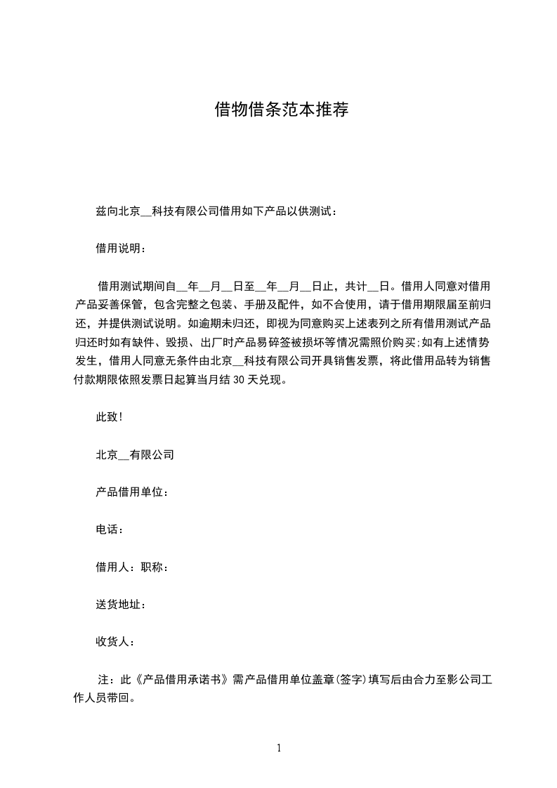 借用测试期间自__年__月__日至__年__月__日止,共计__日。借用人同意对借用产品妥善保管,包含完整之包装、手册及配件,如不合使用,请于借用期限届至前归还,并提供测试说明。如逾期未归还,即视为同意购买上述表列之所有借用测试产品,归还时如有缺件、毁损、出厂时产品易碎签被损坏等情况需照价购买;如有上述情势发生,借用人同意无条件由北京__科技有限公司开具销售发票,将此借用品转为销售,付款期限依照发票日起算当月结30天兑现。