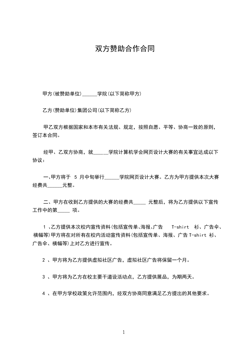 一、甲方将于5 月中旬举行______学院网页设计大赛。乙方为甲方提供本次大赛经费共______元整。