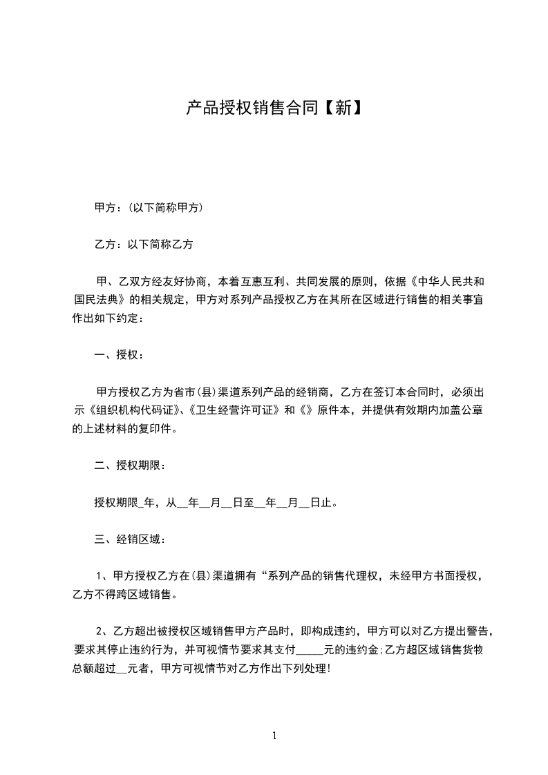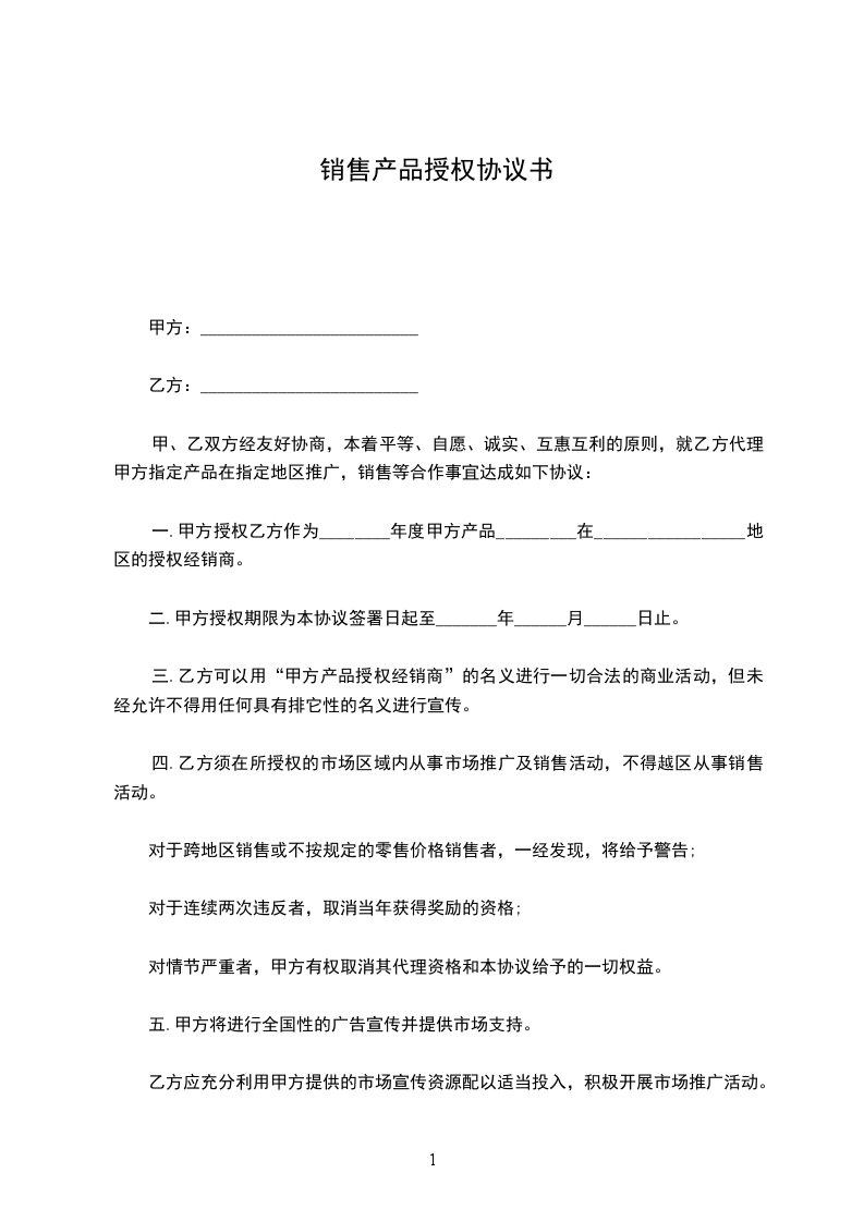 产品授权销售合同范本篇2甲方:______________________________(以下简称为甲方)