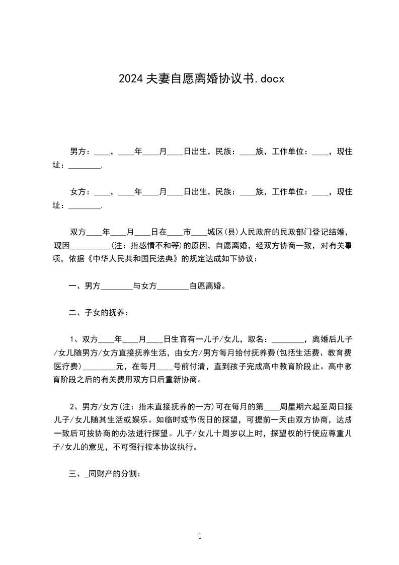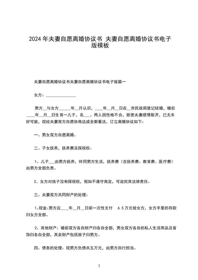协议人双方子__年__月__日在区办理结婚登记。因双方性格不合无法共同生活,就自愿离婚一事达成如下协议: