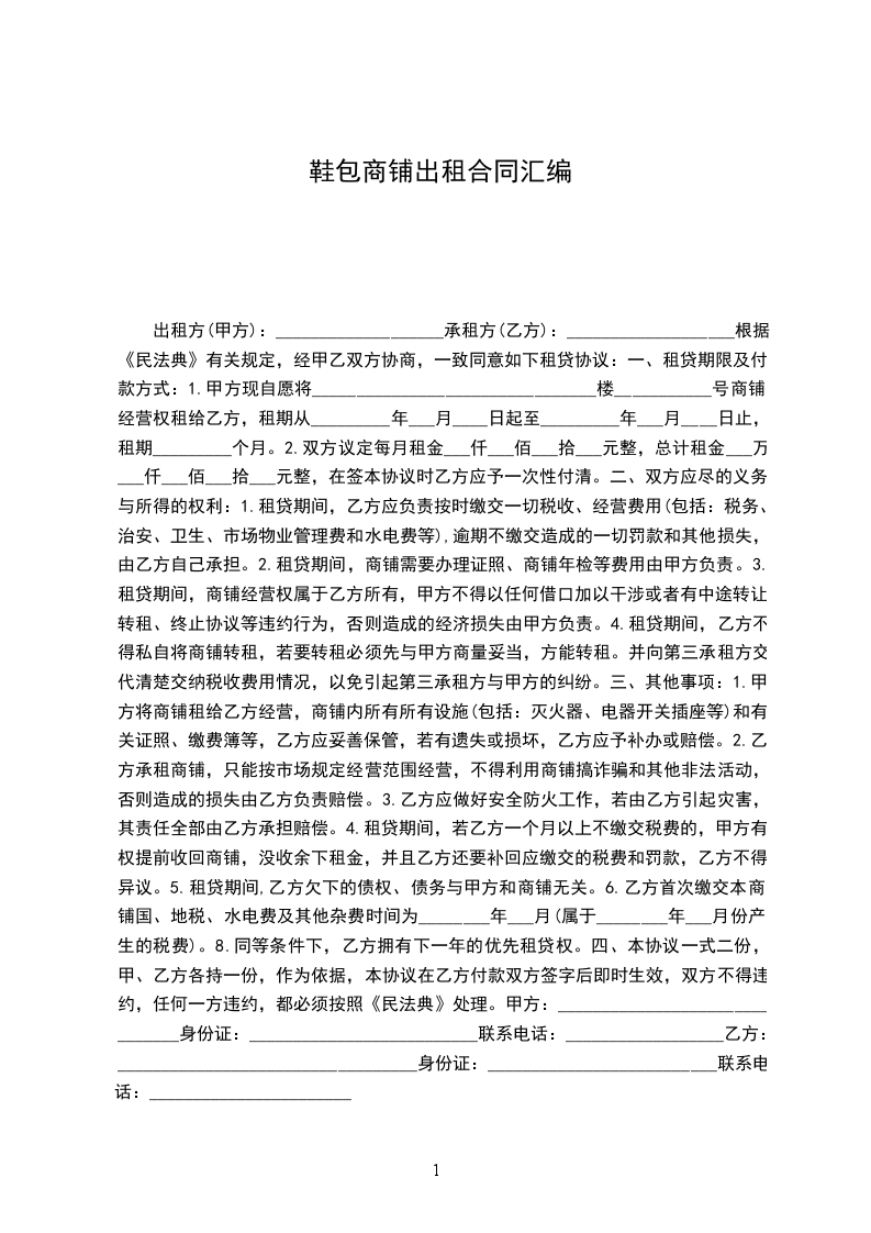 1.甲方现自愿将________________________________楼___________号商铺经营权租给乙方,租期从_________年___月____日起至_________年___月____日止,租期_________个月。