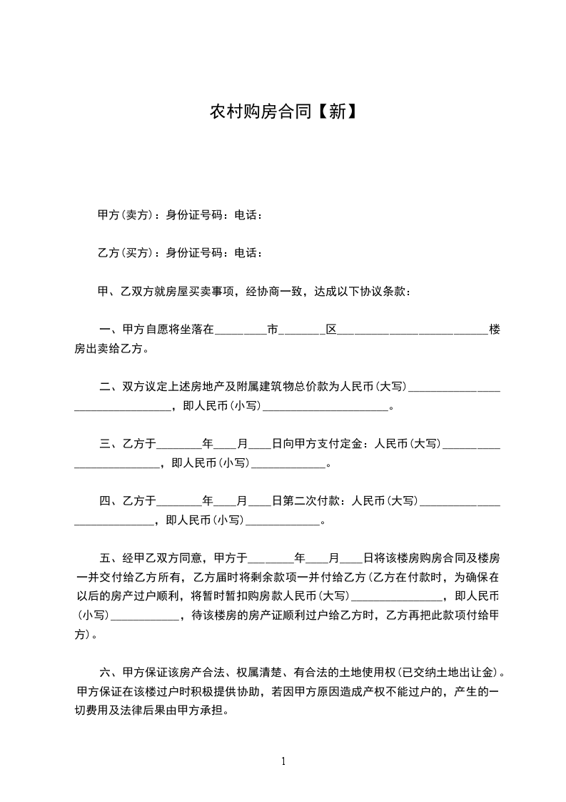 甲方(卖方):身份证号码:电话: