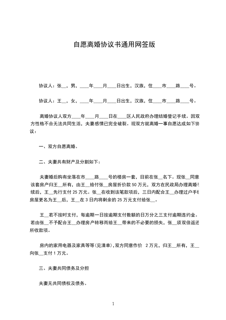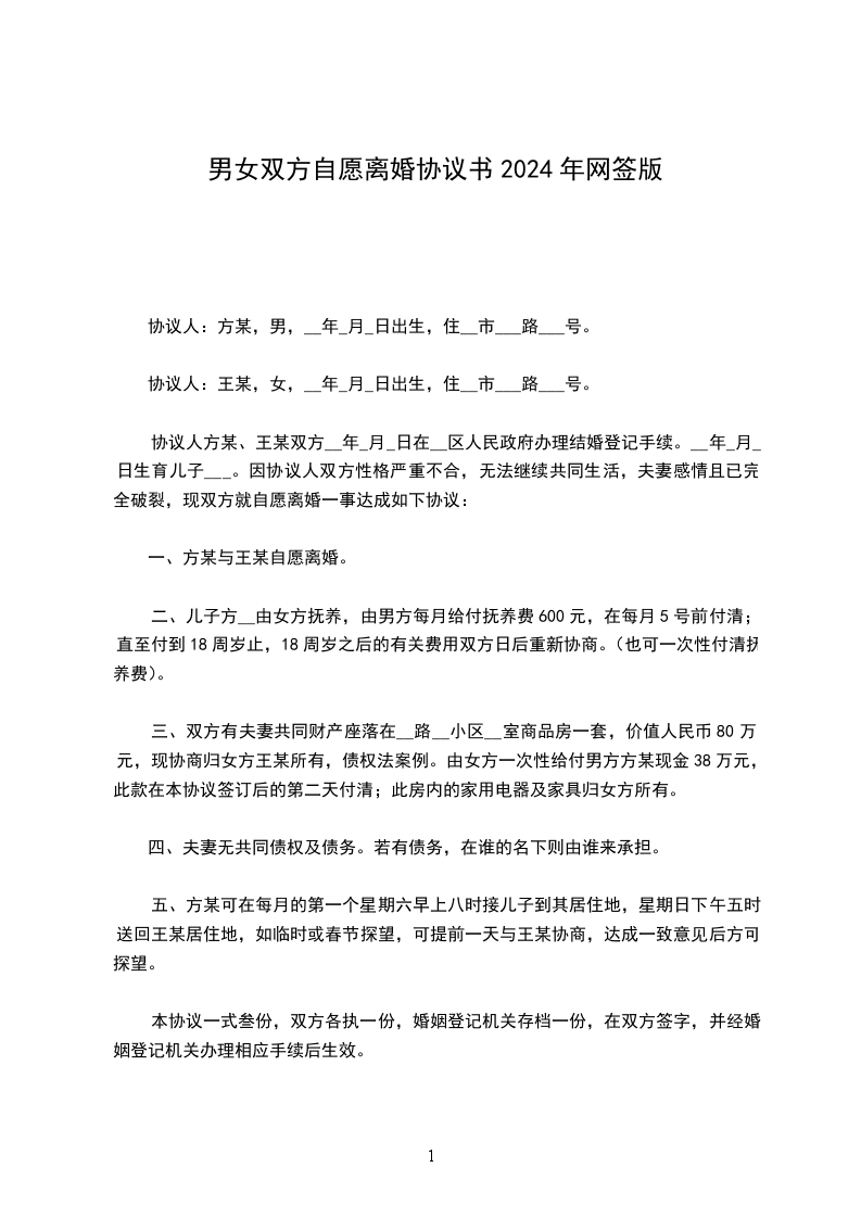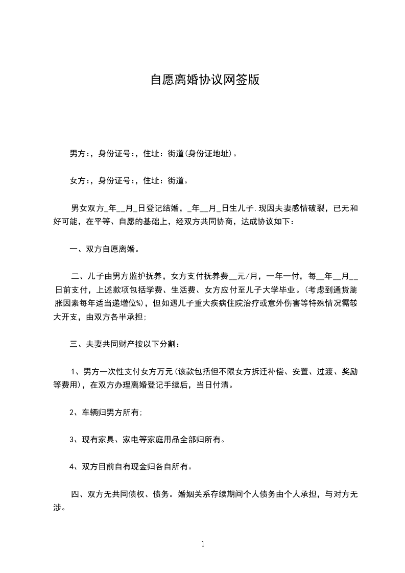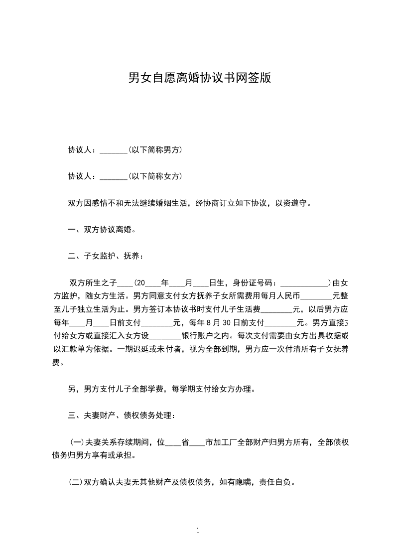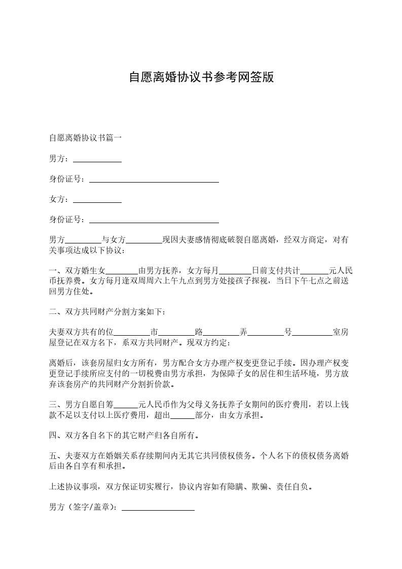 一、双方自愿解除婚姻关系。