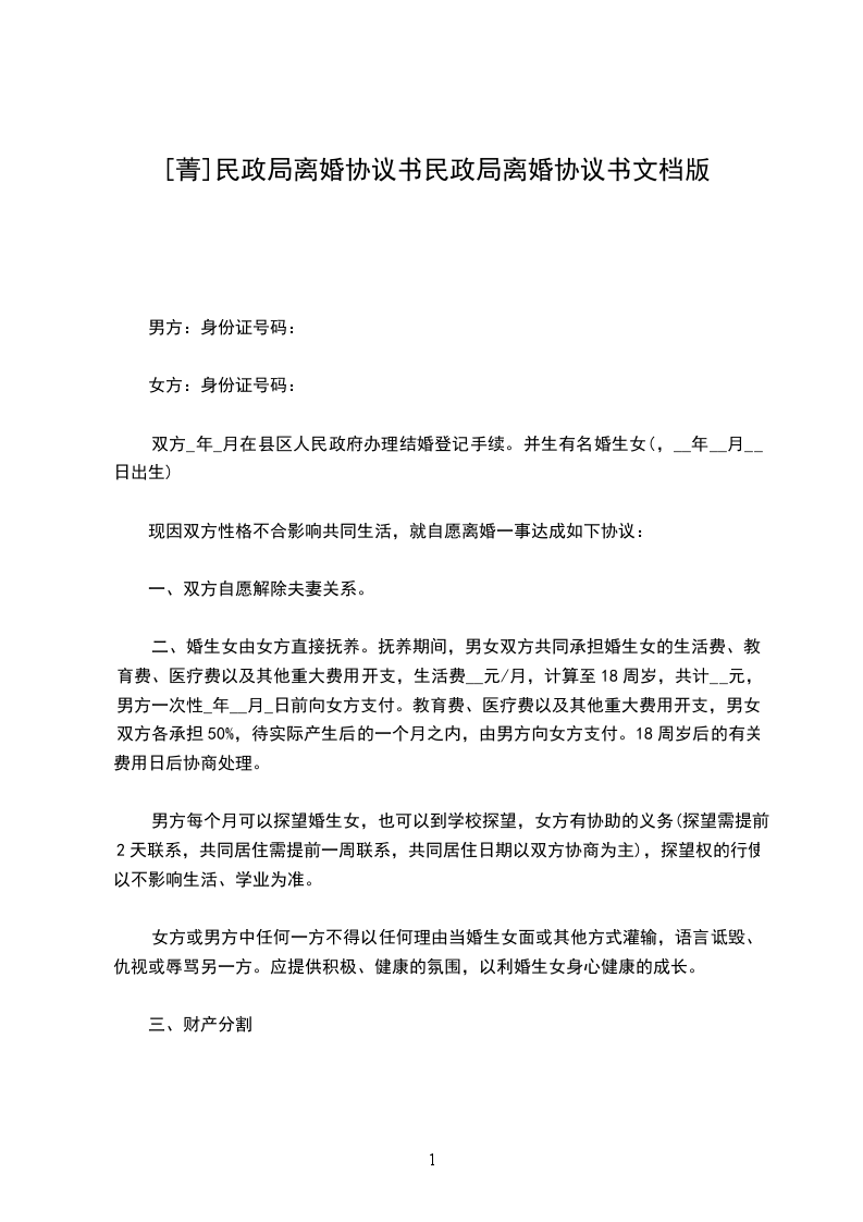 女方:身份证号码: