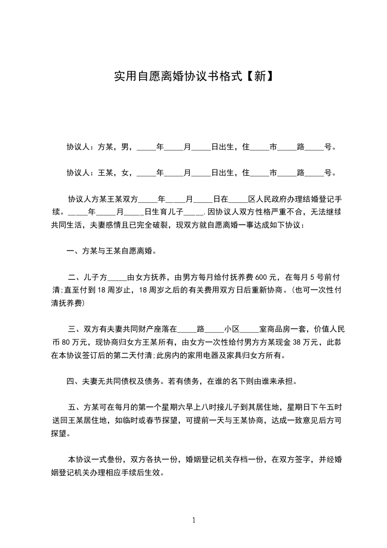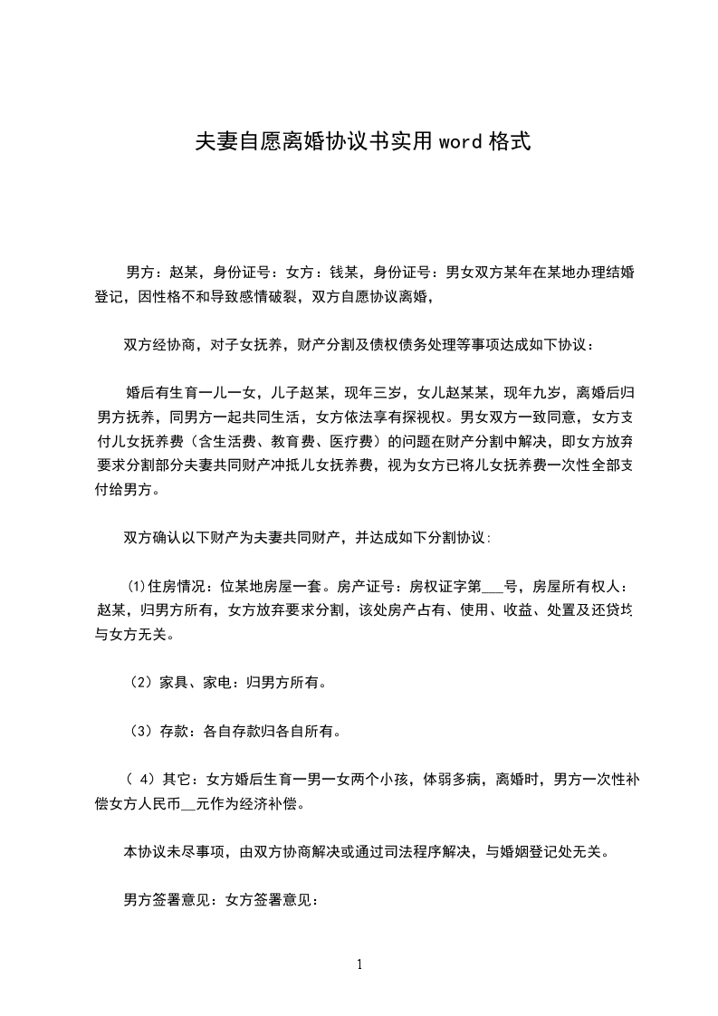 本协议一式叁份,双方各执一份,婚姻登记机关存档一份,在双方签字,并经婚姻登记机关办理相应手续后生效。