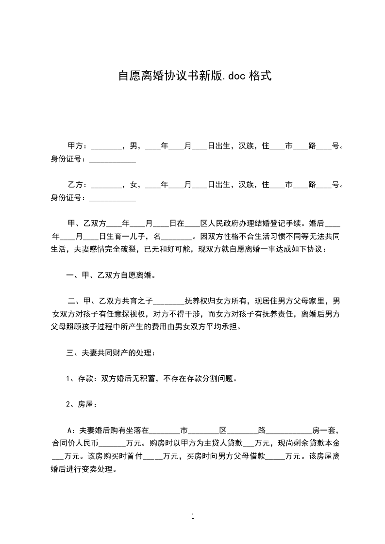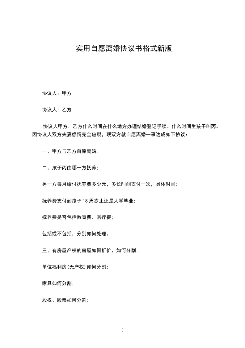 一、甲方与乙方自愿离婚。