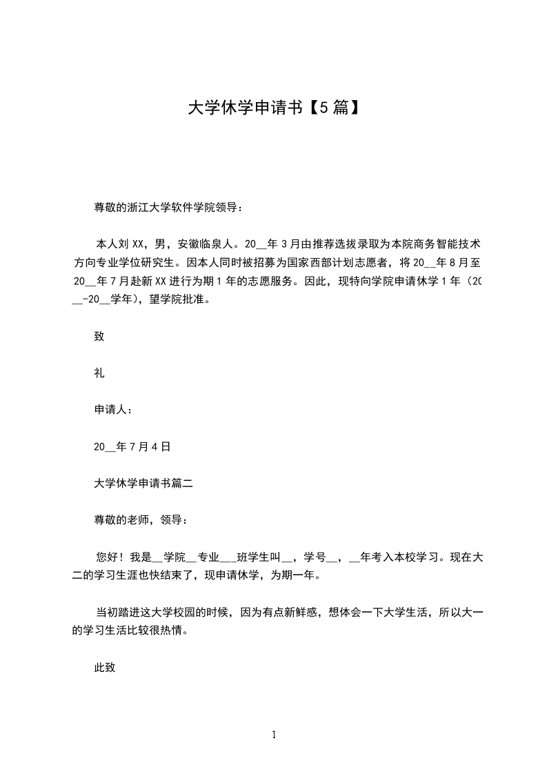 休学申请书篇5尊敬的___: