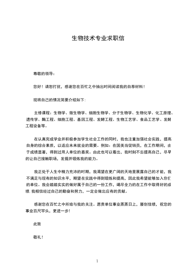 十年磨一剑,霜刃未曾试'',我真诚的希望成为贵单位的一员.我定会以饱满的热情和坚韧的性格努力勤奋工作,与同事精诚合作,为单位贡献积蓄多年的智慧和才干.恳请接纳,回函是盼,我恭候您的佳音!我相信自己能力,更相信您的正确选择!给我一个机会,我将还您一个奇迹!