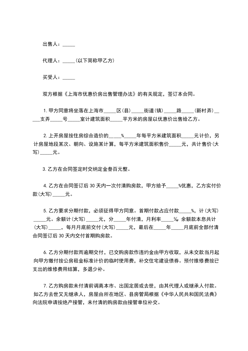 双方根据《上海市优惠价房出售管理办法》的有关规定,签订本合同。