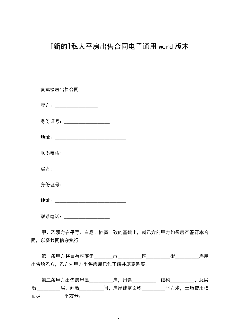 复式楼房出售合同