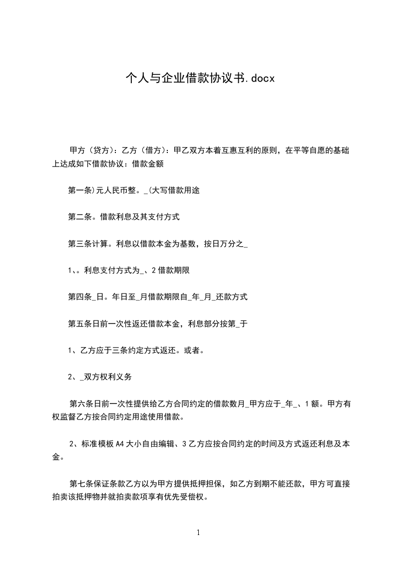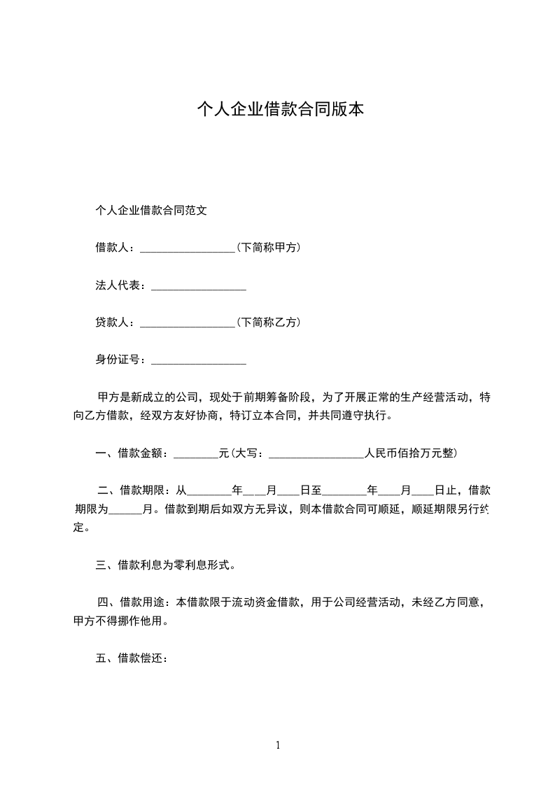1、甲方应_______________年___________月___________日前一次性提供给乙方合同约定的借款数额。