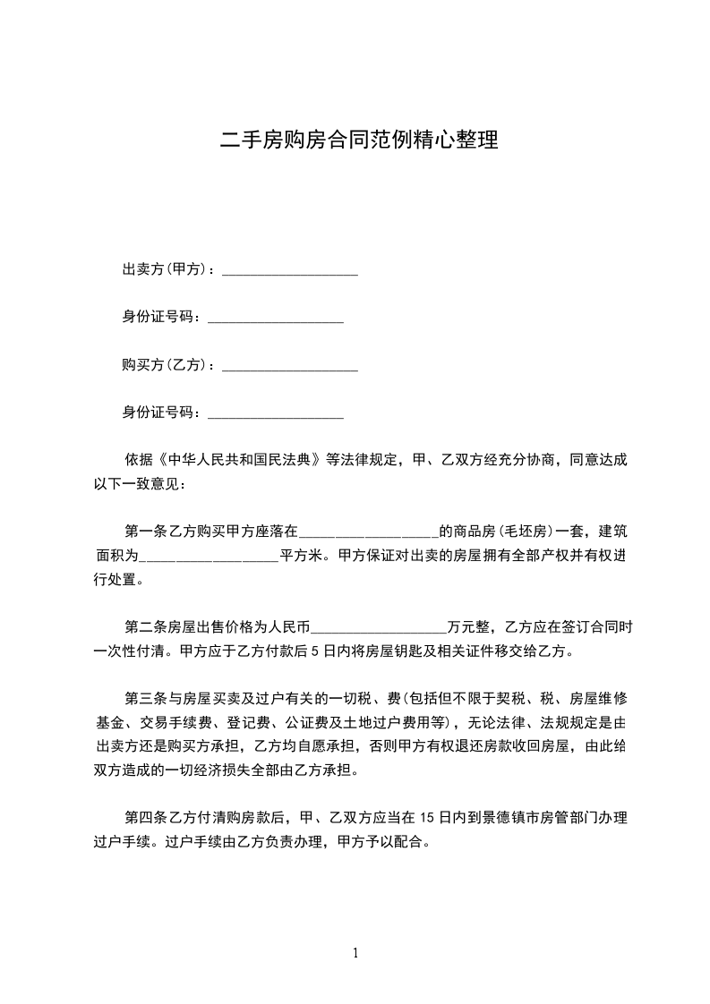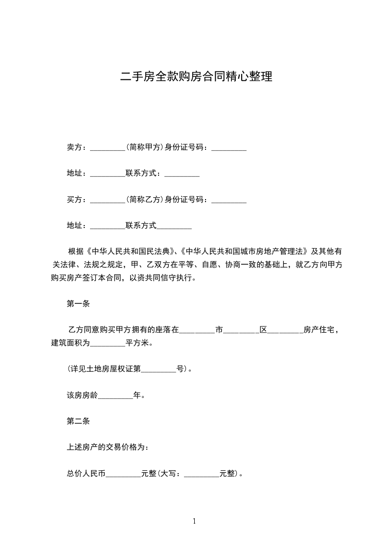3.按套(单元)计算,该商品房总价款为(_____________币)_____________仟_____________佰_____________拾_____________万_____________仟_____________佰_____________拾_____________元整。
