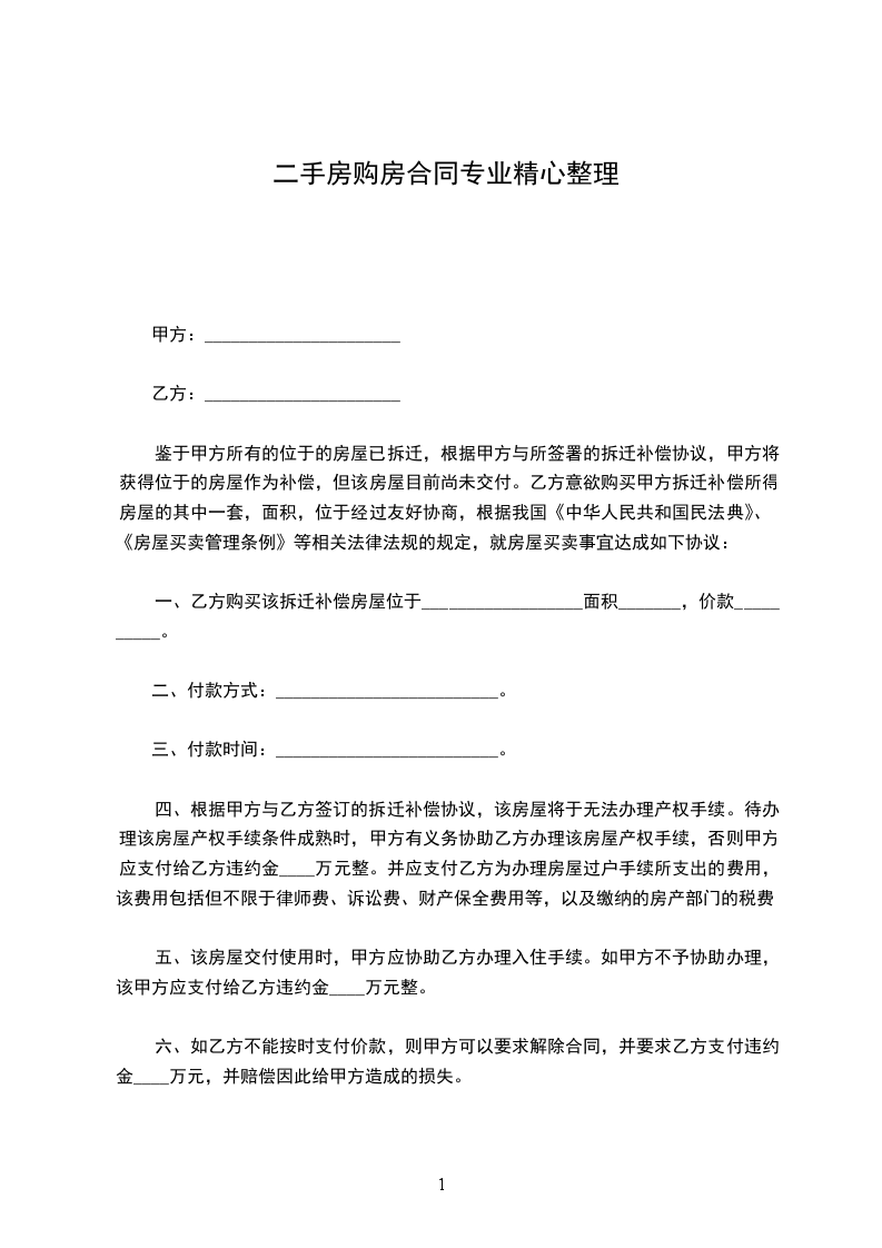 (1)逾期不超过_______________日,自本合同第八条规定的最后交付期限的第二天起至实际交付之日止,出卖人按日向买受人支付已交付房价款万分之_______________的违约金,合同继续履行;