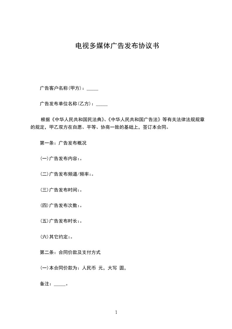 七、广告单价 元,优惠 %,净价 元,播出次数 次,总计人民币(大写): ,(小写) 元。