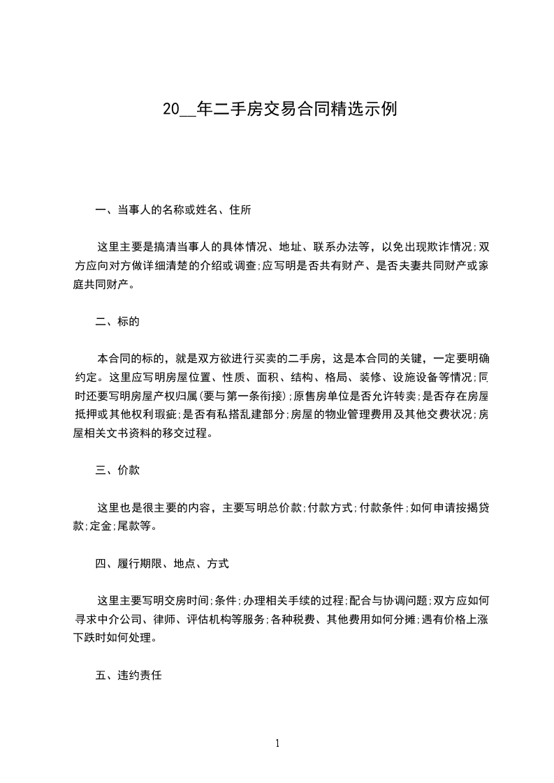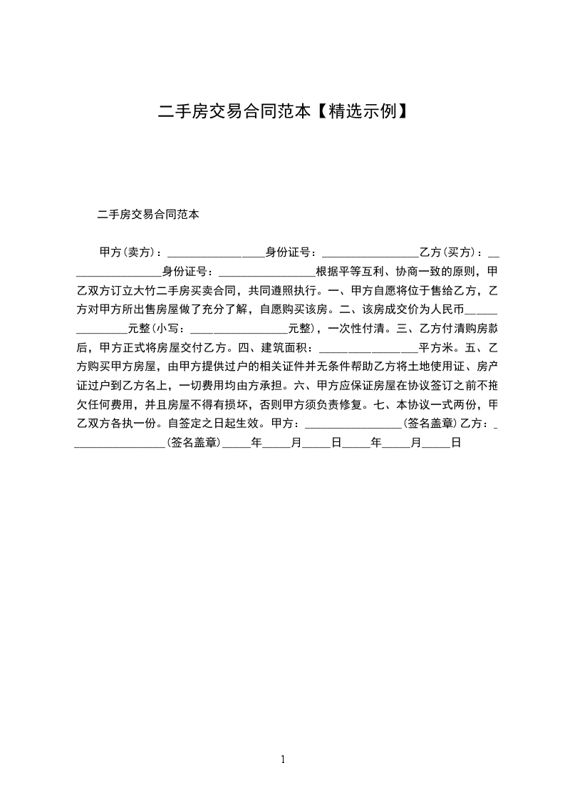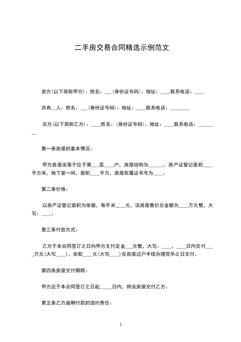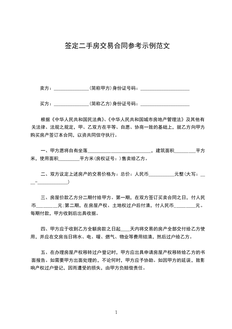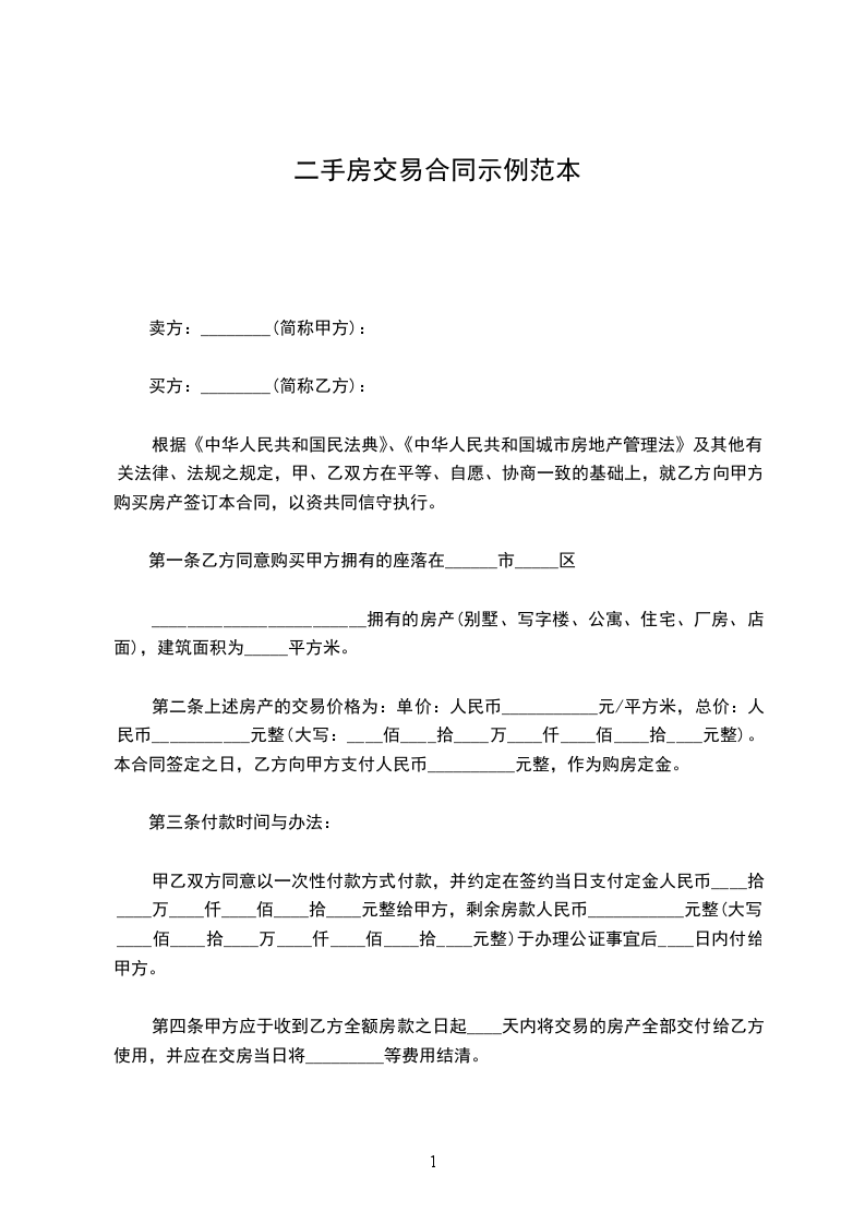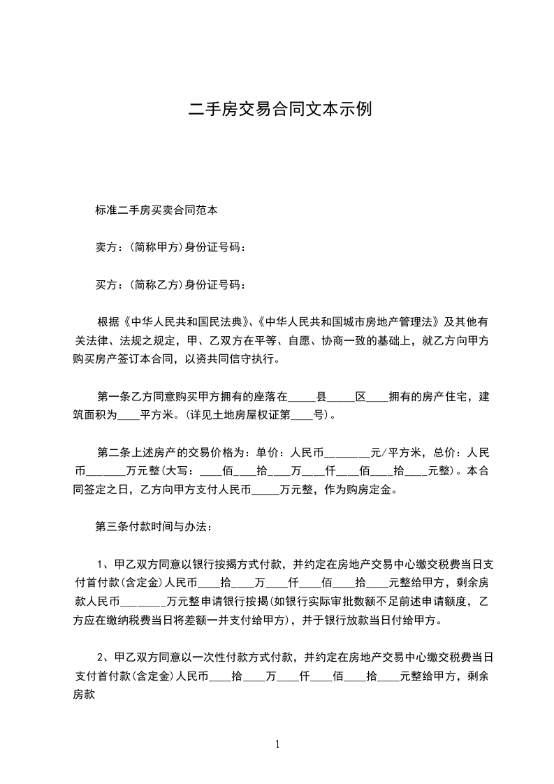 标准二手房买卖合同范本