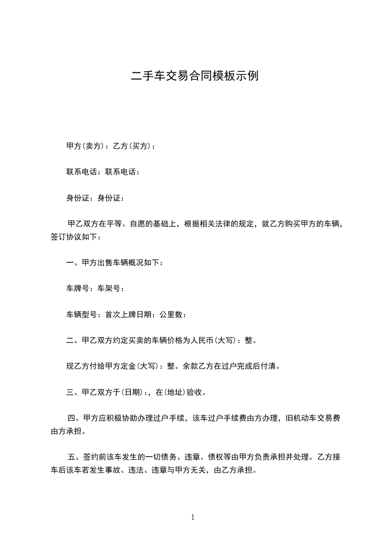 买方:(简称乙方)身份证号码:
