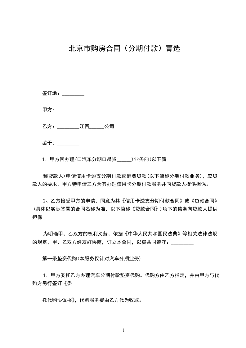 1、甲方因办理(口汽车分期口易贷______)业务向(以下简