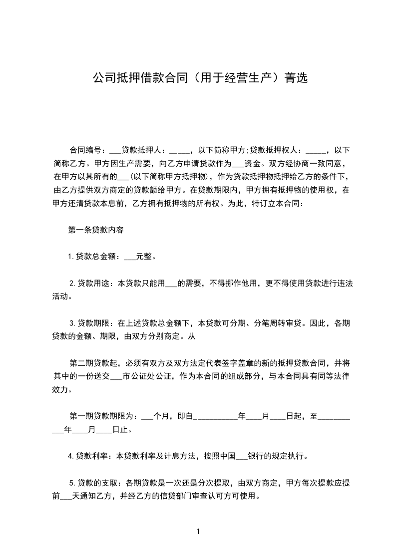 合同编号:___贷款抵押人:_____,以下简称甲方;贷款抵押权人:_____,以下简称乙方。甲方因生产需要,向乙方申请贷款作为___资金。双方经协商一致同意,在甲方以其所有的___(以下简称甲方抵押物),作为贷款抵押物抵押给乙方的条件下,由乙方提供双方商定的贷款额给甲方。在贷款期限内,甲方拥有抵押物的使用权,在甲方还清贷款本息前,乙方拥有抵押物的所有权。为此,特订立本合同: