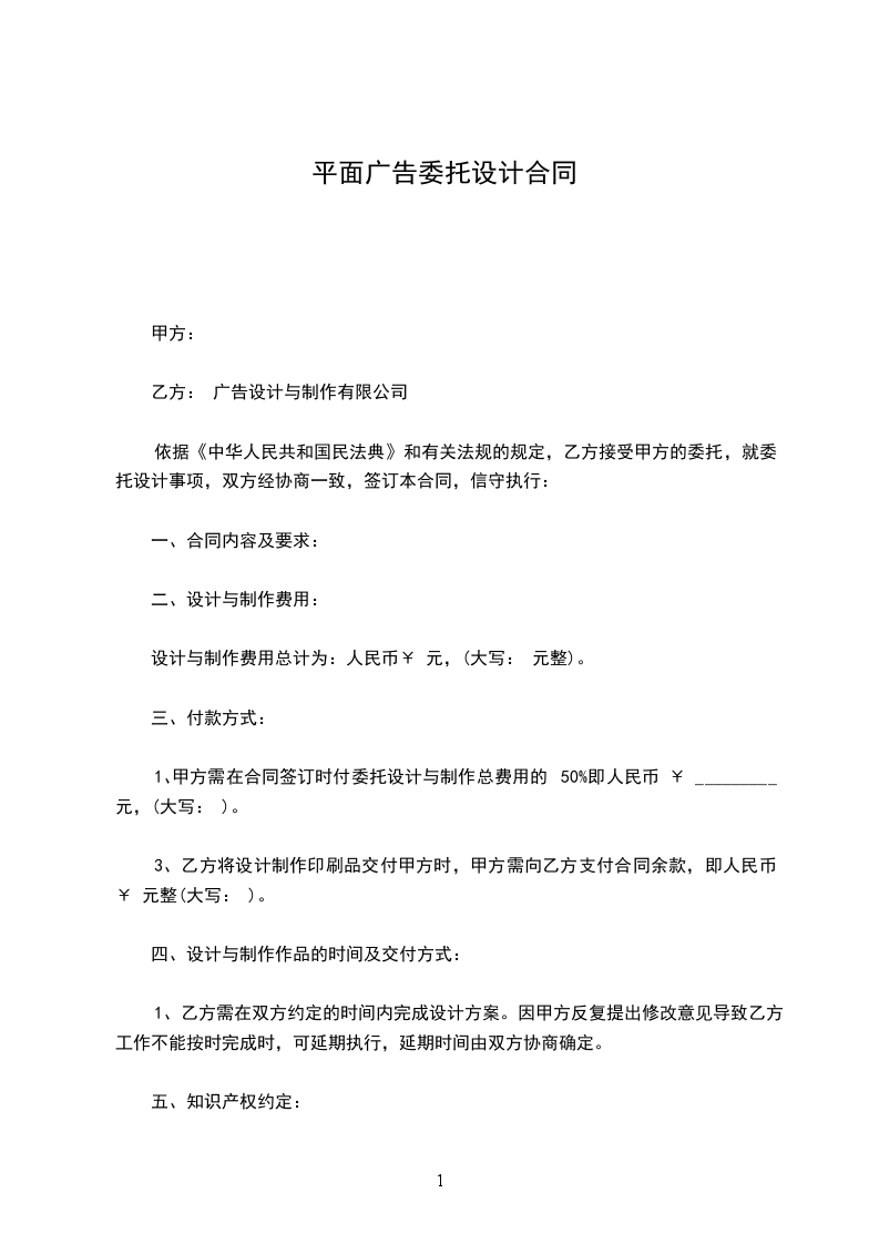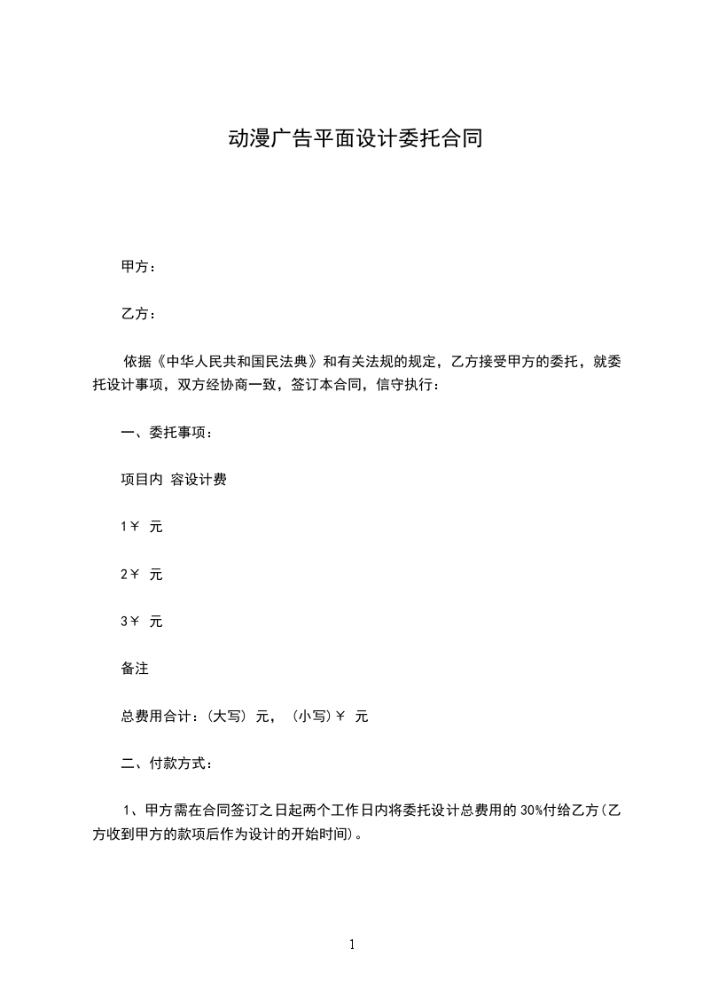 1、乙方需在_ 个工作日内设计出甲方的初稿。
