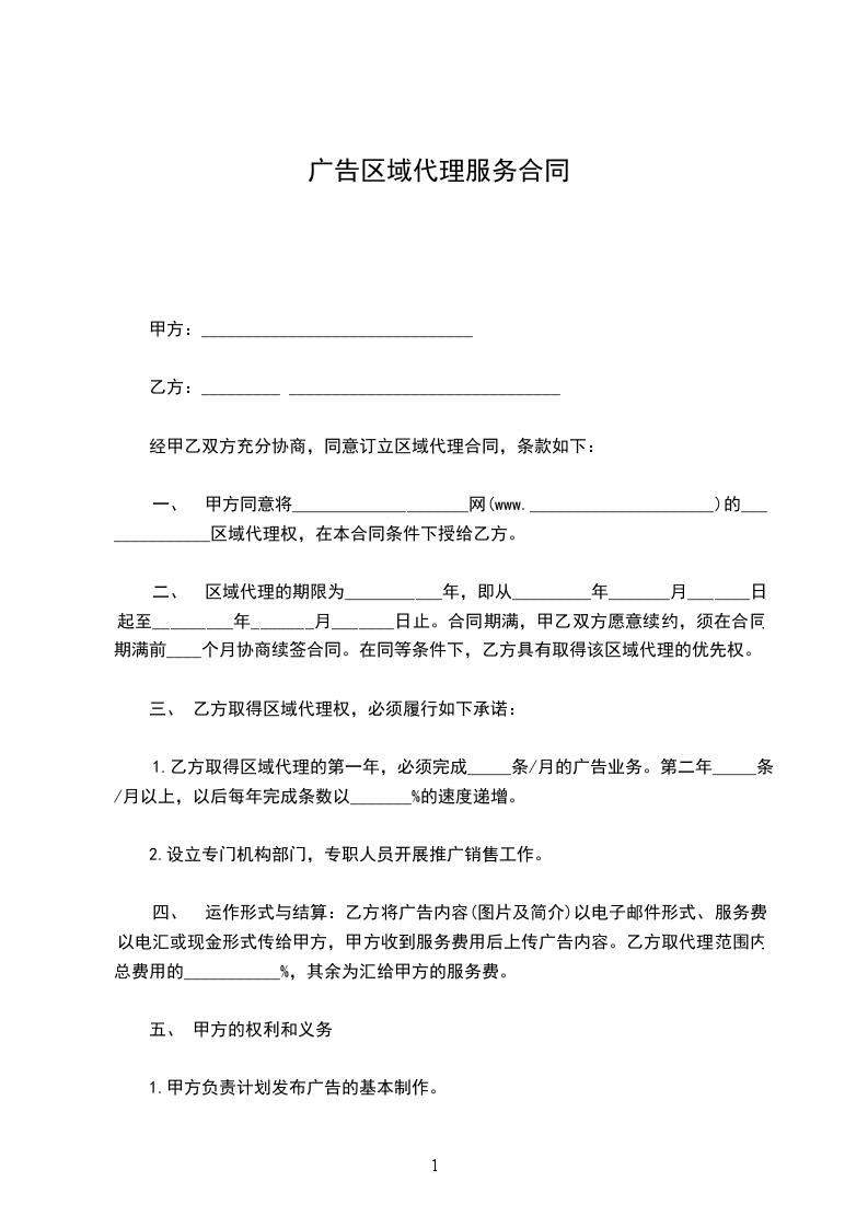 第一条 经甲、乙双方协商,甲方授乙方为____地区____弹力自行车销售代理。
