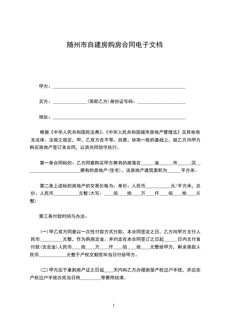 第四条付款方式购房合同范本买受方应于本合同生效之日向出卖方支付定金(_____币)______拾______万______千______百_____拾______元整,并应于本合同生效之日起________日内将该房屋全部价款付给出卖方。车库的价款等出卖方整好车库后付讫。具体付款方式可由双方另行约定。