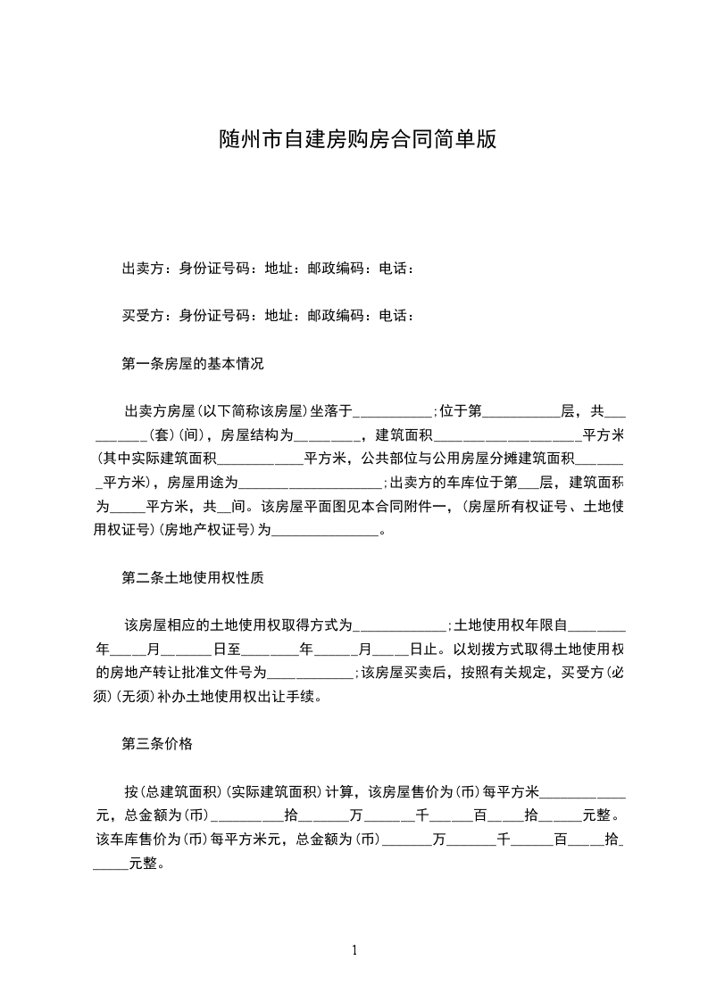 出卖方:身份证号码:地址:邮政编码:电话: