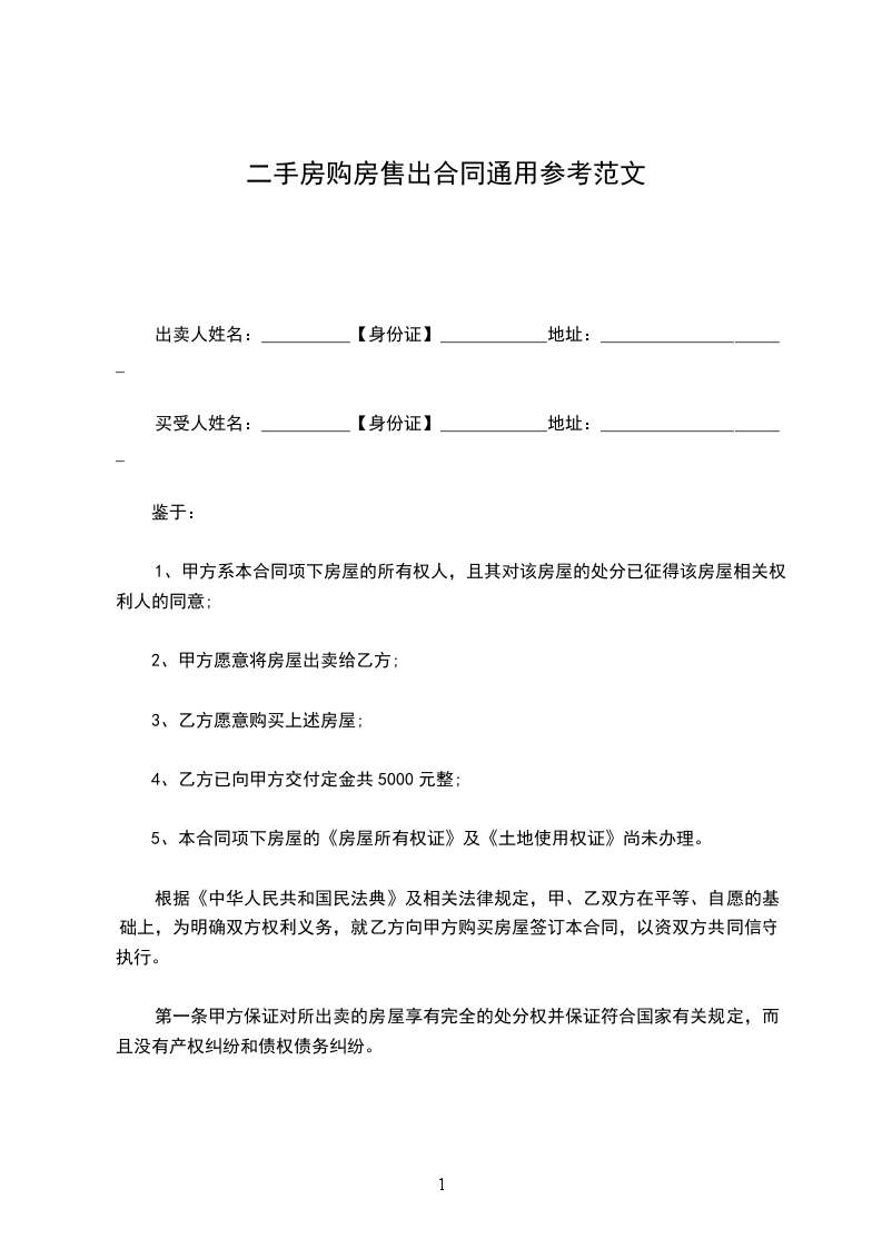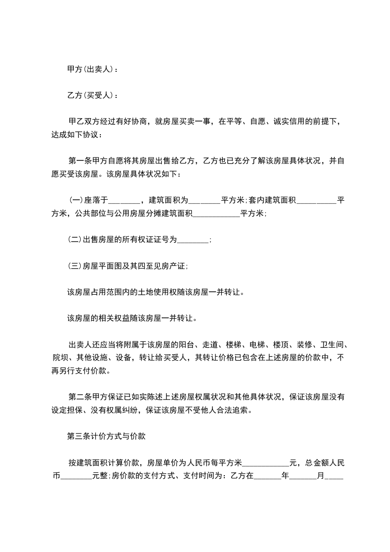 第一条甲方保证对所出卖的房屋享有完全的处分权并保证符合国家有关规定,而且没有产权纠纷和债权债务纠纷。