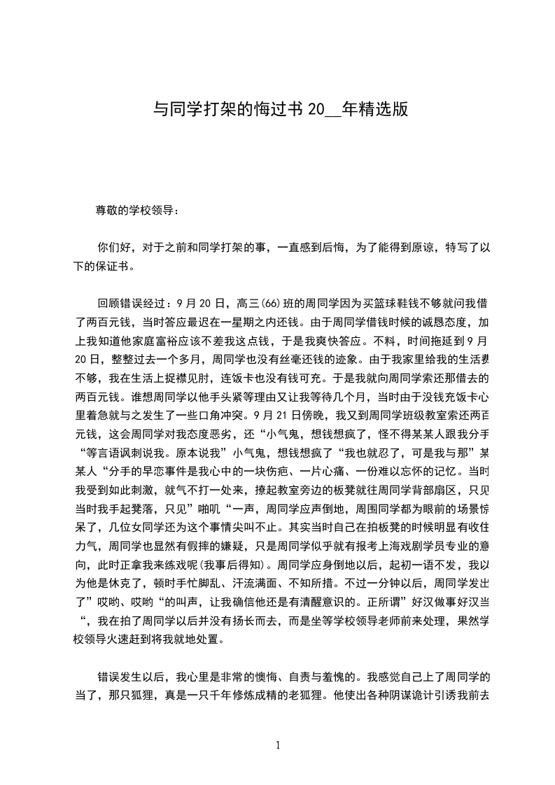 你们好,对于之前和同学打架的事,一直感到后悔,为了能得到原谅,特写了以下的保证书。