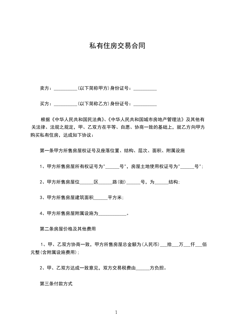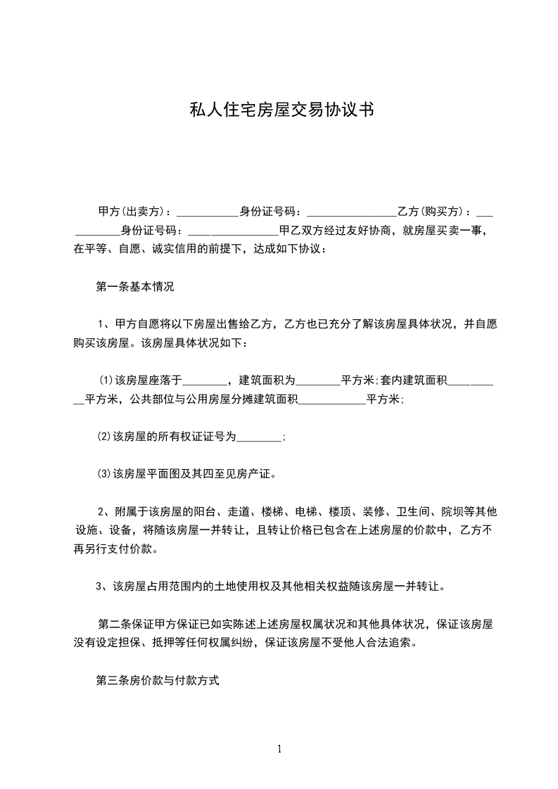 第二条上述房产的交易价格为:单价:人民币___________元/平方米,总价:人民币___________元整。