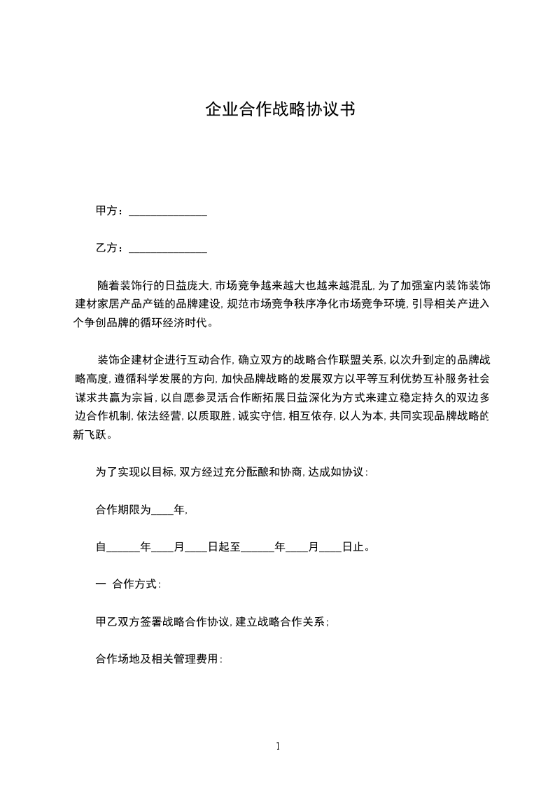 装饰企建材企进行互动合作,确立双方的战略合作联盟关系,以次升到定的品牌战略高度,遵循科学发展的方向,加快品牌战略的发展双方以平等互利优势互补服务社会谋求共赢为宗旨,以自愿参灵活合作断拓展日益深化为方式来建立稳定持久的双边多边合作机制,依法经营,以质取胜,诚实守信,相互依存,以人为本,共同实现品牌战略的新飞跃。