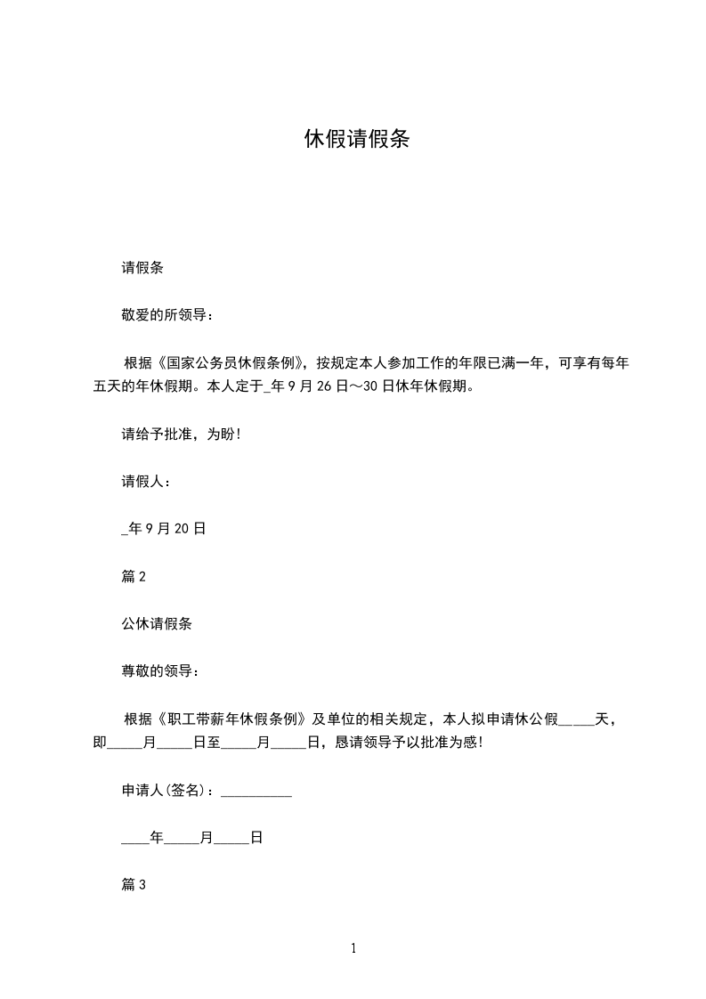申请公休时间_____年_____月_____日至_____年_____月_____日共计_____天(不包括周末节假日)
