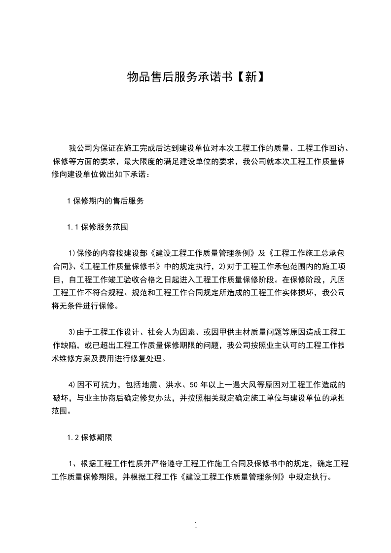 我公司为保证在施工完成后达到建设单位对本次工程工作的质量、工程工作回访、保修等方面的要求,最大限度的满足建设单位的要求,我公司就本次工程工作质量保修向建设单位做出如下承诺: