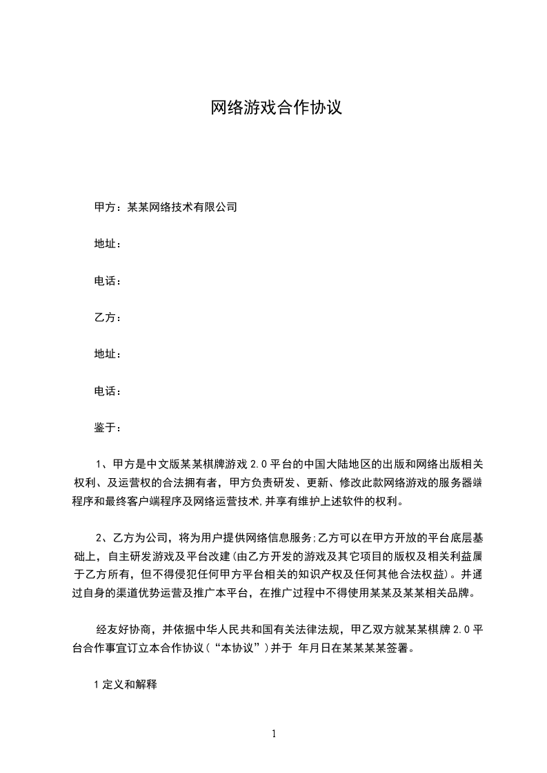 1、甲方是中文版某某棋牌游戏2.0平台的中国大陆地区的出版和网络出版相关权利、及运营权的合法拥有者,甲方负责研发、更新、修改此款网络游戏的服务器端程序和最终客户端程序及网络运营技术,并享有维护上述软件的权利。