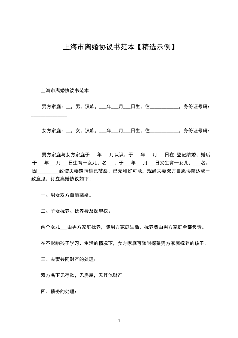 夫妻双方因一些原因不能再共同经营婚姻时,就会提出离婚的请求。离婚就可能牵扯到孩子的抚养问题,财产等方面的问题,这些问题如何解决,都要有正规的离婚协议书,以下提供一份: