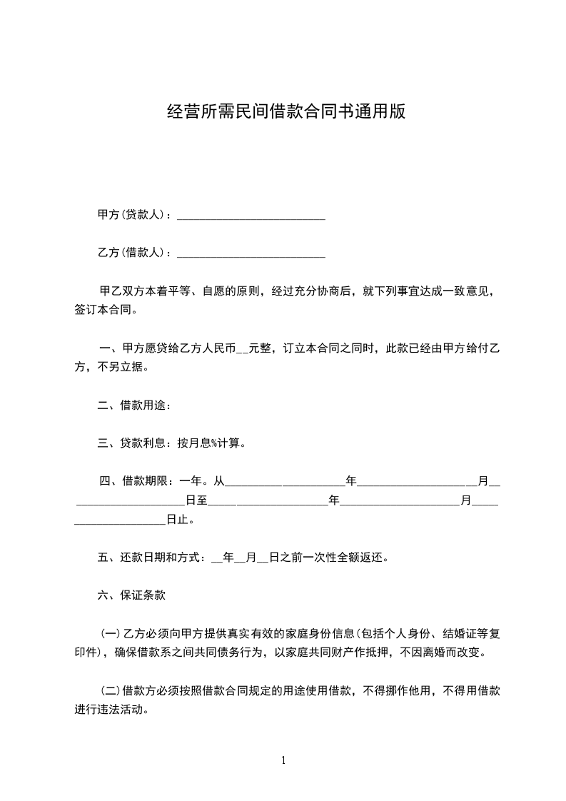 四、借款期限:一年。从_____________________年_____________________月_____________________日至_____________________年_____________________月_____________________日止。