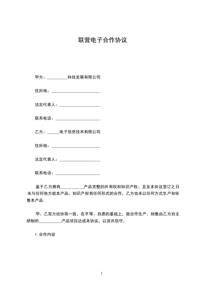 甲、乙双方经协商一致,在平等、自愿的基础上,就合作生产、销售由乙方自主研制的___________产品项目达成本协议,以资共信守。