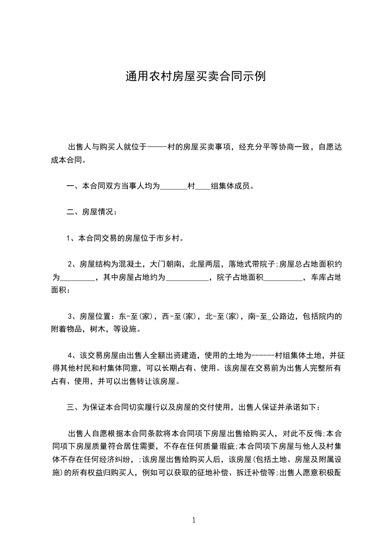 出售人与购买人就位于——-村的房屋买卖事项,经充分平等协商一致,自愿达成本合同。